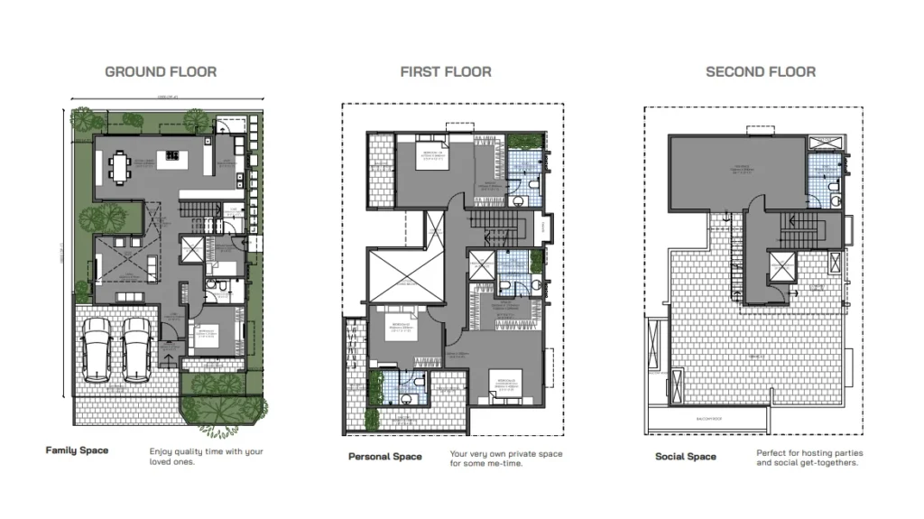 Soulace is a premium villa community developed by Modern Spaaces, situated off Sarjapur Road in the rapidly growing Sompura Gate area of Bangalore. This expansive project spans 26.5 acres and features 266 units of 4 and 5 BHK independent villas, each thoughtfully designed to offer luxury and comfort. The villas are equipped with private elevators and adorned with elegant Italian marble flooring, constructed using sturdy Aluminum formwork technology.